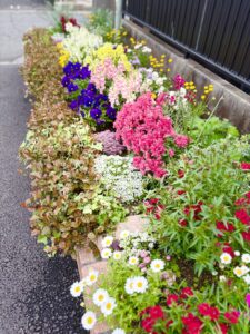 「今日は蕾が膨らんだね」「こっちは水が足りないかも」——。従業員が毎日愛情を込めて行う手入れは、チームの会話を弾ませるきっかけになっています。一人の力ではなく、誰かが忙しい時は他のメンバーがそっと水をあげる。そんな日々の助け合いが、綺麗な花を咲かせています。お越しの際は是非ご覧になってください。